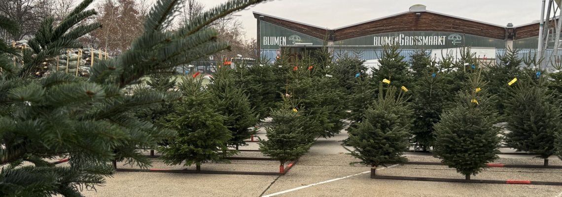 Alle Jahre wieder: das gilt auch für den Christbaumverkauf am Großmarkt Wien. Die Firma Fröhlich bietet frisch geschnittene Nadelbäume in verschiedensten Größen und Sorten an. Die Bäume stammen aus der steirischen Region Weiz und sind auch als Topfware erhältlich. Der Fachbetrieb Fröhlich Tree GmbH zeichnet sich durch besonders umweltfreundliche Aufzucht, heimische Top-Qualität und lange Haltbarkeit der Bäume aus. Auch Reisig und Zubehör sind lagernd. Einkaufen können nicht nur Großhändler*innen, sondern auch Privatkund*innen. Die GMW Großmarkt Wien Betrieb GmbH ist für die Verwaltung und Vermietung des Marktareals zuständig.