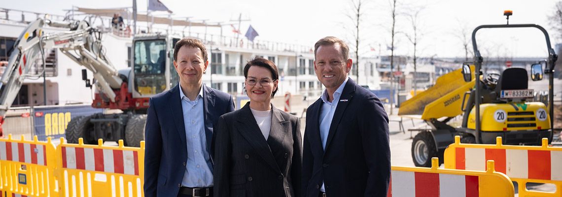 Am Mittwoch, den 26. März 2025, fiel der Startschuss für den Bau der Landstrom-Infrastruktur für Kabinenschiffe durch Wien Energie. Ab dem Frühjahr 2026 fließt 100 Prozent Ökostrom über eine Landstrom-Station an jeder der zwölf Anlegestellen in die Schiffe, die beim Schifffahrtszentrum Wien der Donauraum Wien und beim Hafen Freudenau, beides Unternehmen der Wien Holding, anliegen. Das macht eine zeitgleiche Versorgung von bis zu 50 Schiffen mit 100 Prozent Ökostrom statt Dieselgeneratoren möglich.