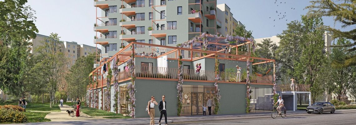 Jede der 52 Wohnungen verfügt über einen privaten Freiraum der als gut proportionierter Balkon, Loggia oder Terrasse ausgebildet ist. Neben einer Gemeinschaftsterrasse, auf der es einen Kinderspielbereich, überdeckte Sitzbereiche sowie einen Gemüsegarten geben wird, steht den zukünftigen Bewohner*innen auch ein Gemeinschaftsraum zur Verfügung. Zusätzlich entsteht eine flexibel nutzbare Gewerbefläche sowie eine zugehörige Tiefgarage. Anfang 2026 sollen die Wohnungen bezugsfertig sein.