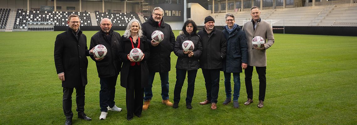 Bei der Begehung präsentierte sich das Stadion sichtbar im Aufbruch. Der neue Rasen wurde vollständig verlegt, die neuen Tribünenstrukturen sind weit fortgeschritten, und im Innenbereich laufen die Installationsarbeiten für Technik und Infrastruktur. Karin Satzinger, stv. Abteilungsleiterin Sport Wien (MA 51): „Die Verlegung des Rasens ist ein sichtbares Signal dafür, wie rasch und präzise auf dieser Baustelle gearbeitet wird. Das Stadion nimmt jeden Tag mehr Gestalt an und wir liegen voll im Plan, um Ende März an die Betriebsführung übergeben zu können. Diese Anlage wird ein bedeutendes Zentrum für den Sport im 17. Bezirk und für ganz Wien werden.“