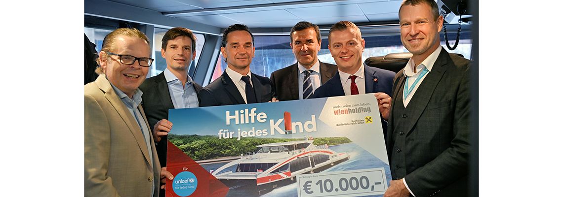Der Twin City Liner der Central Danube, ein gemeinsames Unternehmen der Wien Holding und der Raiffeisenlandesbank NÖ-Wien, unterstützt UNICEF Österreich seit 2018 jährlich mit einer Spende in Höhe von 10.000 Euro.